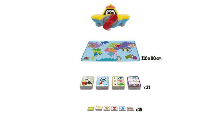 Mata Poznaj Świat- Baw się i Koduj zawiera kompletny zestaw zabawek i materiałów, dzięki którym wraz z kapitanem Codym doświadczysz wielu przygód! Spotkaj zwierzęta z całego świata znajdujące się na macie, podejmij zabawne wyzwanie z kartami misji, wejdź w2 interakcję z samolotem Codym i znajdź właściwą drogę dzięki płytkom kodowania.
