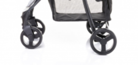 sprawdzi się idealnie przepastny kosz na zakupy, umieszczony poniżej siedziska. Jest otwarty, co daje świetny dostęp do jego zawartości. Z powodzeniem pomieści sprawunki, torbę z rzeczami malca, osłonkę na nóżki czy folię przeciwdeszczową.