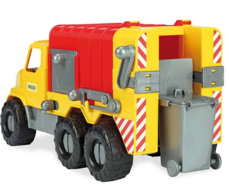 Śmieciarka z serii City Truck to doskonała zabawka dla wszystkich małych wielbicieli pojazdów mechanicznych. Charakteryzuje się realistycznym odwzorowaniem, solidnym wykonaniem, lekkością wytrzymałej konstrukcji oraz łatwością sterowania. Umieszczony z przodu pojazdu zaczep umożliwia zamontowanie sznurka, linki do ciągnięcia. Zabawka wyposażona jest w kontener na śmieci, ruchomy podnośnik umożliwiający opróżnianie kontenera oraz otwieraną boczną klapę. Dzięki temu będzie doskonałym uzupełnieniem zabaw związanych z utrzymaniem czystości i porządku otoczenia – np. na budowie.