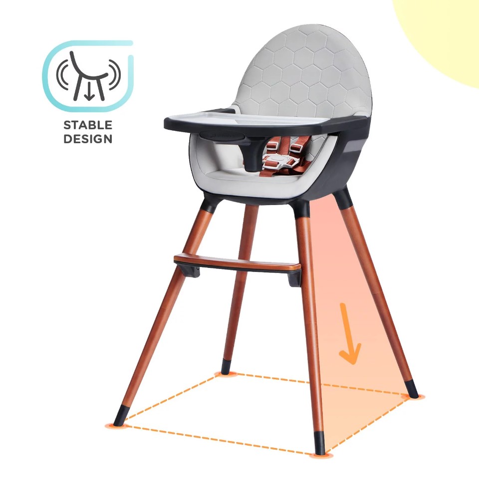 Drewniane nóżki z drewna bukowego zakończone są antypoślizgowymi końcówkami. Zapewniają stabilność i bezpieczeństwo podczas posiłków i zabawy, a przy okazji nadają krzesełku niebanalnego wyglądu.