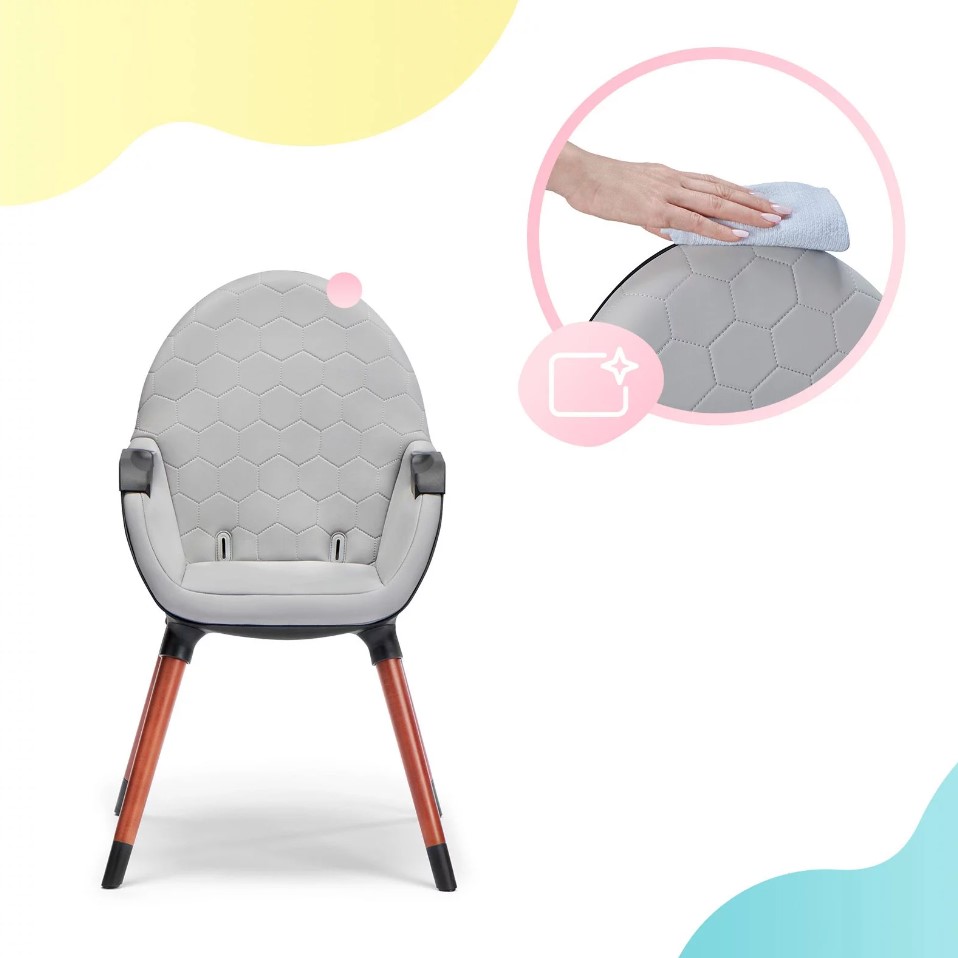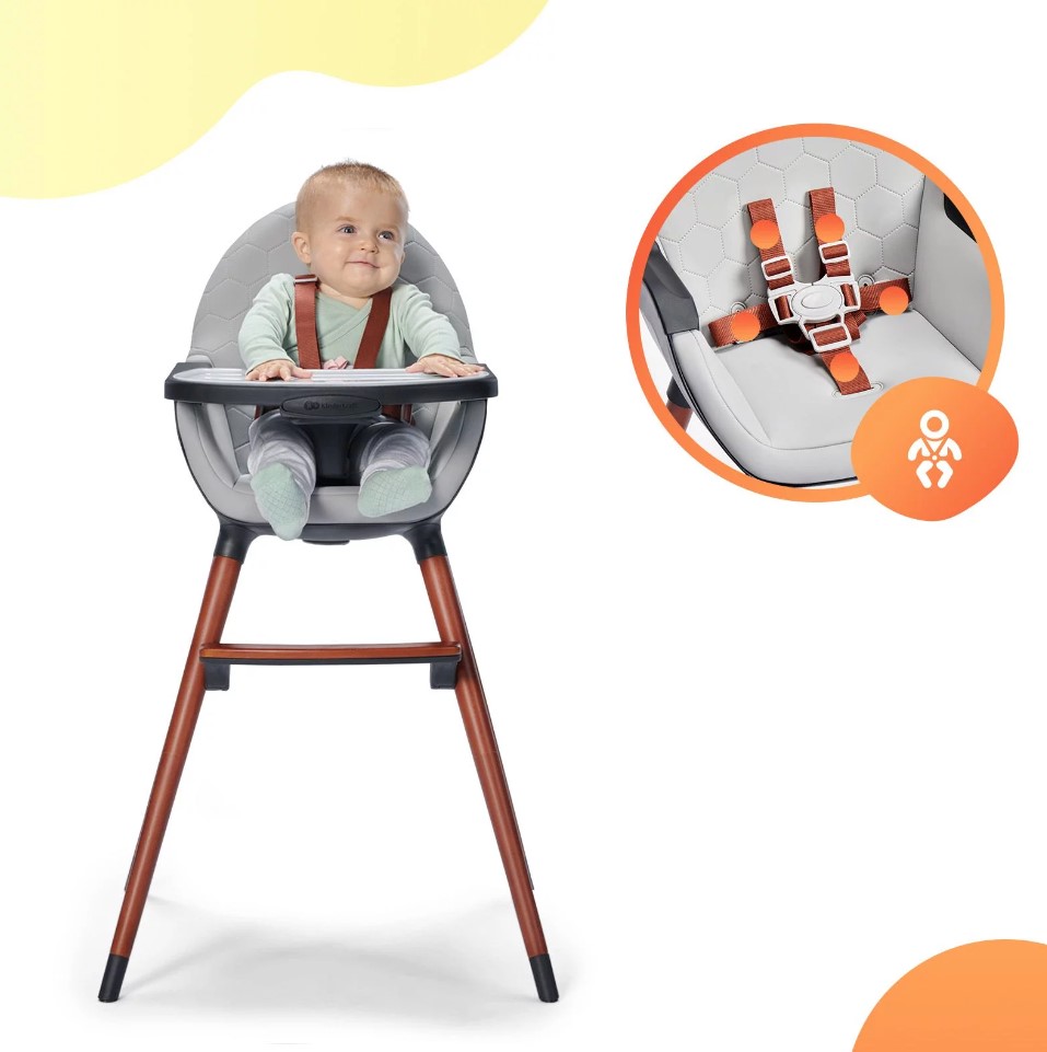 Poznaj FINIX - krzesełko do karmienia 2 w 1, które zachwyca pięknym designem i funkcjonalnością. W kilka chwil zmienisz FINIX w praktyczny fotelik do zabawy, który będzie idealny do zabaw małego inżyniera, strażaka czy artystki. Będzie towarzyszył Wam od pierwszych wspólnych posiłków i zostanie na dłużej jako ulubiony mebelek Twojego dziecka. Zapewni dziecku wygodę i bezpieczeństwo dzięki 5-punktowym pasom bezpieczeństwa oraz szerokiemu, wysokiemu oparciu. Jednocześnie przy projektowaniu FINIX położono ogromny nacisk na estetykę wykończenia, dobór materiałów wysokiej klasy i stylowy wygląd, wpisujący się w aktualne trendy wnętrzarskie. Dzięki temu FINIX to krzesełko, stworzone bez kompromisów. W przyjęciu prawidłowej postawy w krzesełku dla dziecka FINIX pomoże odczepiany podnóżek, który można wyregulować w 2 pozycjach. Siedzisko i oparcie wykończone jest miękką, łatwą w czyszczeniu ekoskórą. Oparcie ma nietypowy design w hexagony, które sprawiają, że FINIX odnajdzie się w każdym wnętrzu.