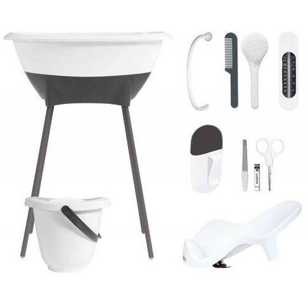 Nowoczesna konstrukcja wanienki - stojak gwarantuje dodatkowy komfort podczas kąpieli, a akcesria dodatkowe są nieodzownym elementen wyprawki.