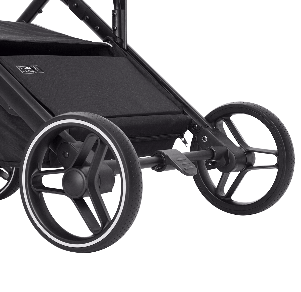 Wielowarstwowa tkanina, z której są uszyte elementy wózka ma hydrofobowy efekt oraz chroni dziecko przed promieniowaniem UV (do UPF 50).