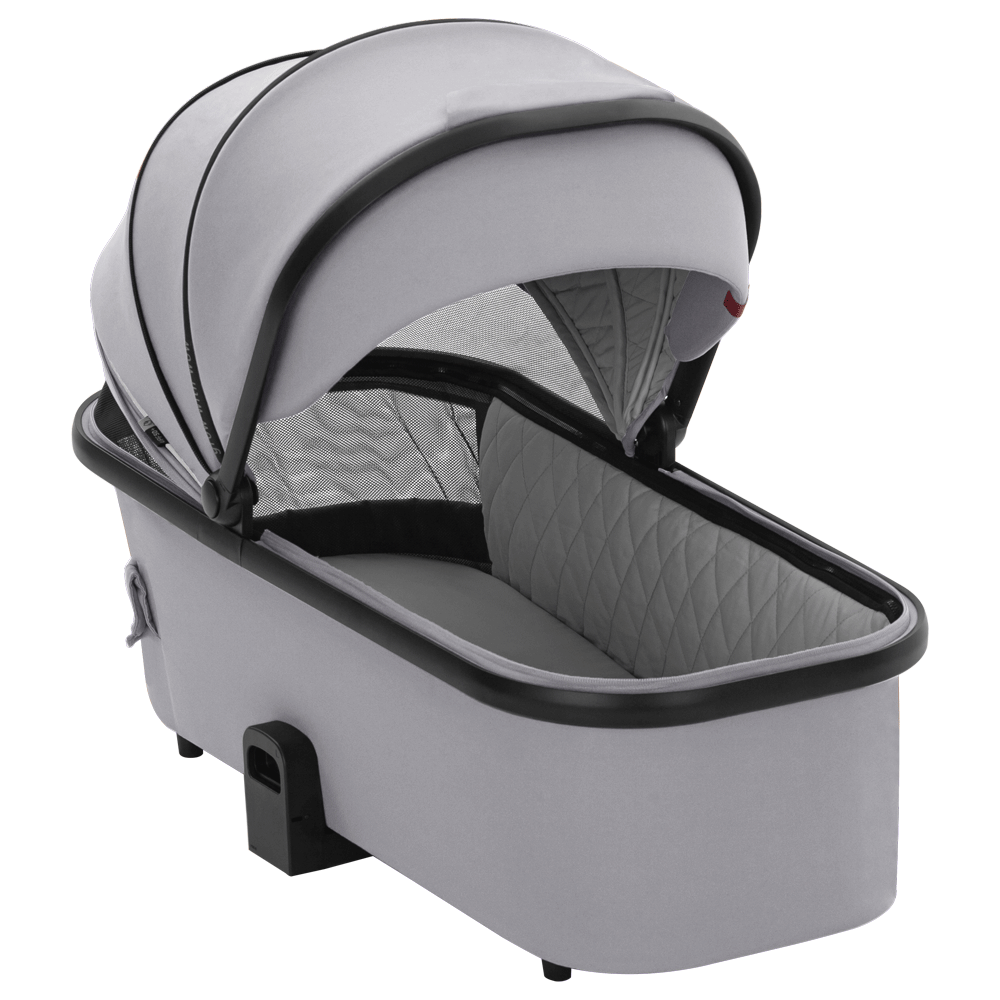 Tylna ścianka kaptura podnosi się żeby zabezpieczyć dodatkowy przypływ świeżego powietrza. Uchwyt do przenoszenia gondoli zintegrowany z kapturem.
