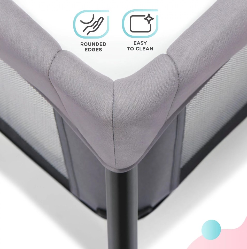 Twoje dziecko będzie bezpieczne nawet podczas najbardziej emocjonującej zabawy. Rogi łóżeczka są zaokrąglone, pokryte miłym w dotyku, miękkim materiałem.