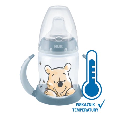 Nuk First Choice Butelka z Uchwytami i Wskaźnikiem Temperatury 150ml Kubuś Puchatek Ustnik Silikonowy Niekapek Niebieski