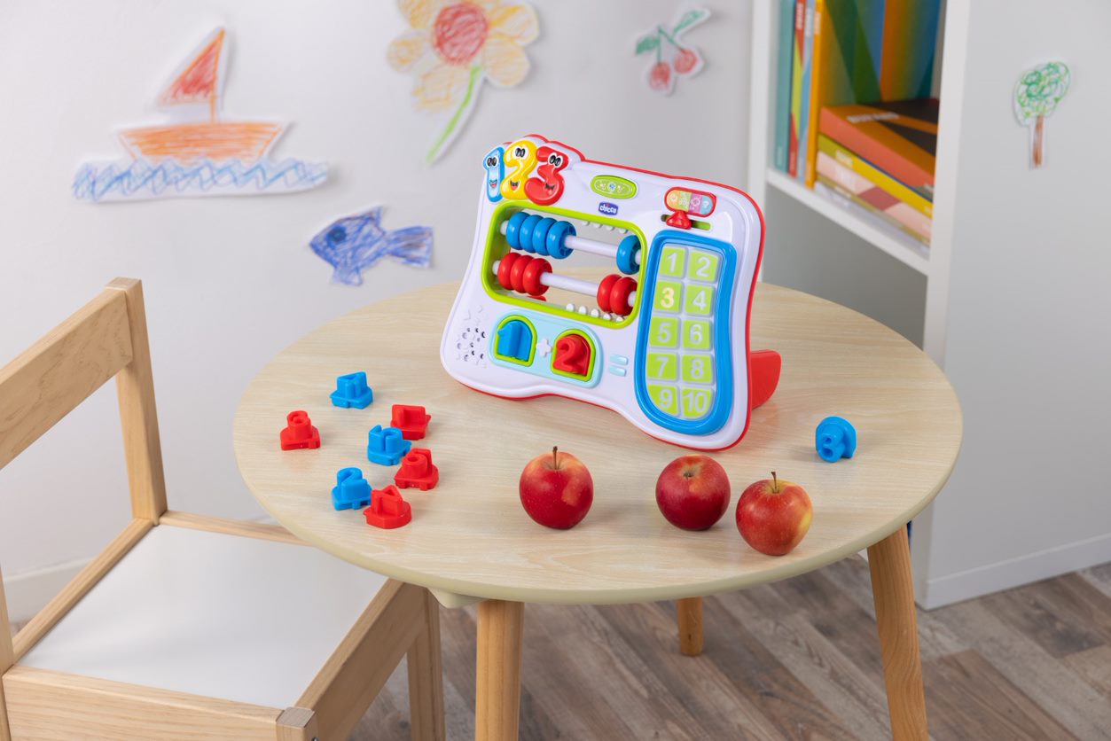 Czas na matematykę! Pedagodzy uważają, że dzieci mogą rozpocząć naukę liczb i sumowania od najmłodszych lat, jednak potrzebują odpowiedniego podejścia. Z Edu Liczydłem od Chicco dzieci najpierw uczą się liczenia (poprzez przesuwanie krążków) i sumowania; następnie, w drugim kroku, dzieci uczą się rozpoznawać liczby i cyfry oraz wskazują sumy za pomocą cyferek 3D.