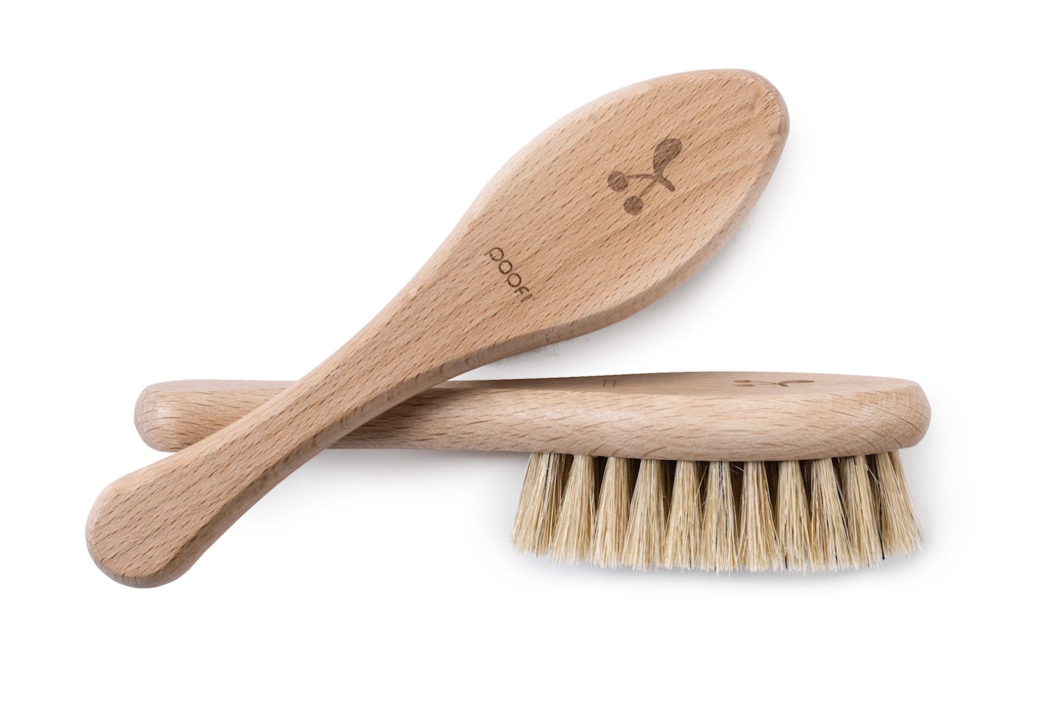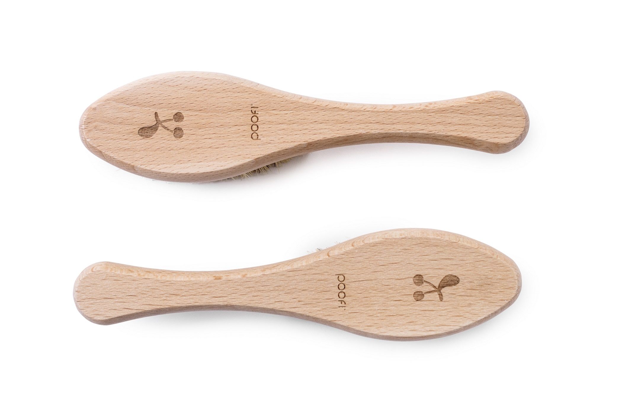 Szczotki Poofi to naturalne produkty, w surowej bukowej oprawie.