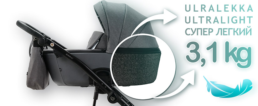 Nowoczesna gondola wykonana jest z EPP, który daje doskonałą izolację termiczną i akustyczną przy zachowaniu najniższej wagi. Posiada otwory i kanały wentylacyjne dla utrzymania właściwego komfortu termicznego. Wersja LUX charakteryzuje się użyciem połączeń takniny z eko-skórą.