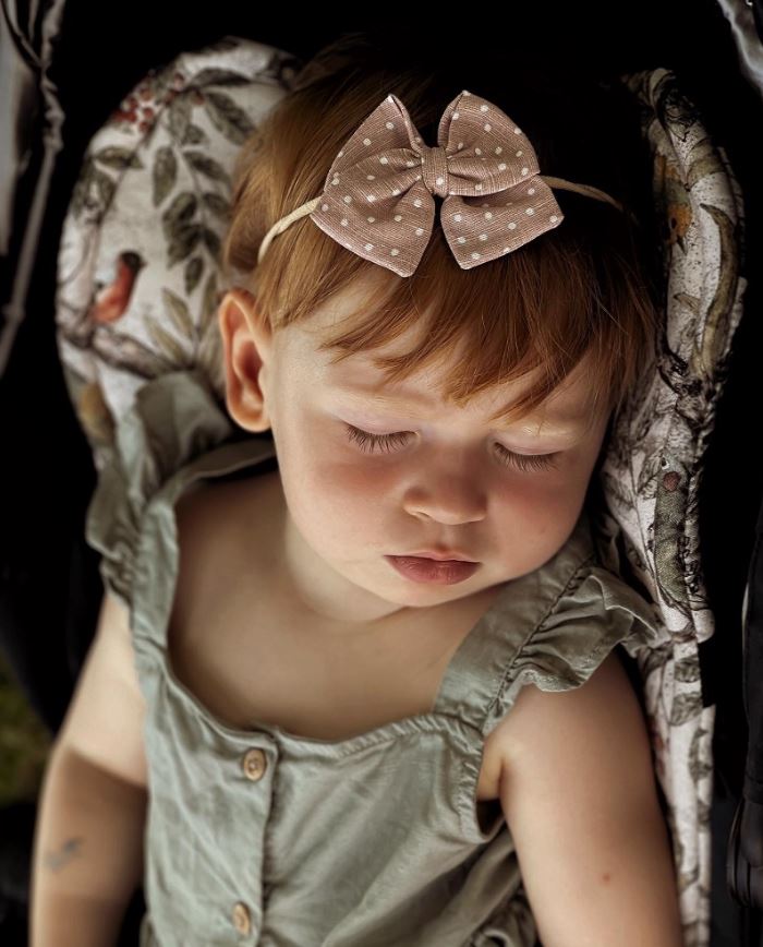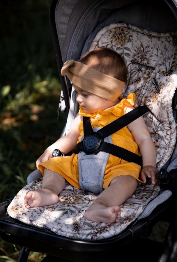 Dzięki otworom na pasy, z łatwością dopasujesz wkładkę Makaszka Memory do swojego wózka. Dodatkowo umieszczono w niej odpinaną szlufkę, która pozwala zamontować poduszeczkę Motylek*. Z tyłu wkładki znajduje się szeroka gumka, dzięki której zamocujesz ją w wózku.
