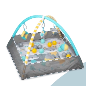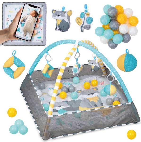 - Funkcja 4w1 - mata, kojec, basenik z kulkami, foto mata