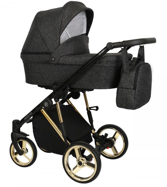 Kunert Molto Premium Wózek Głęboko-Spacerowy 2w1 Grafit Jeans Złota Rama Koła Żelowe