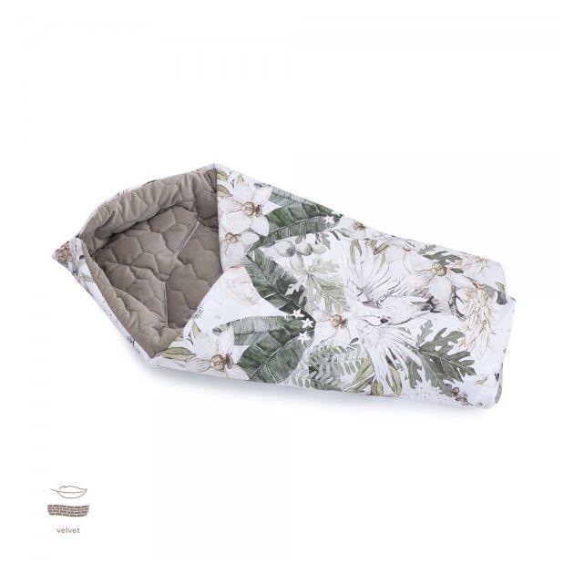 Otulacz Makaszka wykonany jest z najwyższej jakości bawełny, która nie spiera się, "nie mechaci" i nie traci swoich właściwości nawet po wielokrotnym praniu, natomiast z drugiej strony posiada mięciutki Velvet (elegancko przepikowany w niepowtarzalny wzór). Ta aksamitna i miła w dotyku tkanina to idealny materiał - delikatny, a zarazem niezwykle wytrzymały. Innowacyjna technologia podwójnego splotu niezwykle cieniutkich poliestrowych niteczek daje ten fantastyczny efekt. W środku kocyk wypełniony jest antyalergiczną, lekką, silikonową włókniną zapewniającą ciepło maluszkowi. Otulacz wyposażony jest także w otwory na trzy i pięciopunktowe pasy bezpieczeństwa, zapinany jest na szeroki rzep z dużym obszarem regulacji, a w górnej części posiada zapinany kapturek, który otula i chroni główkę.
