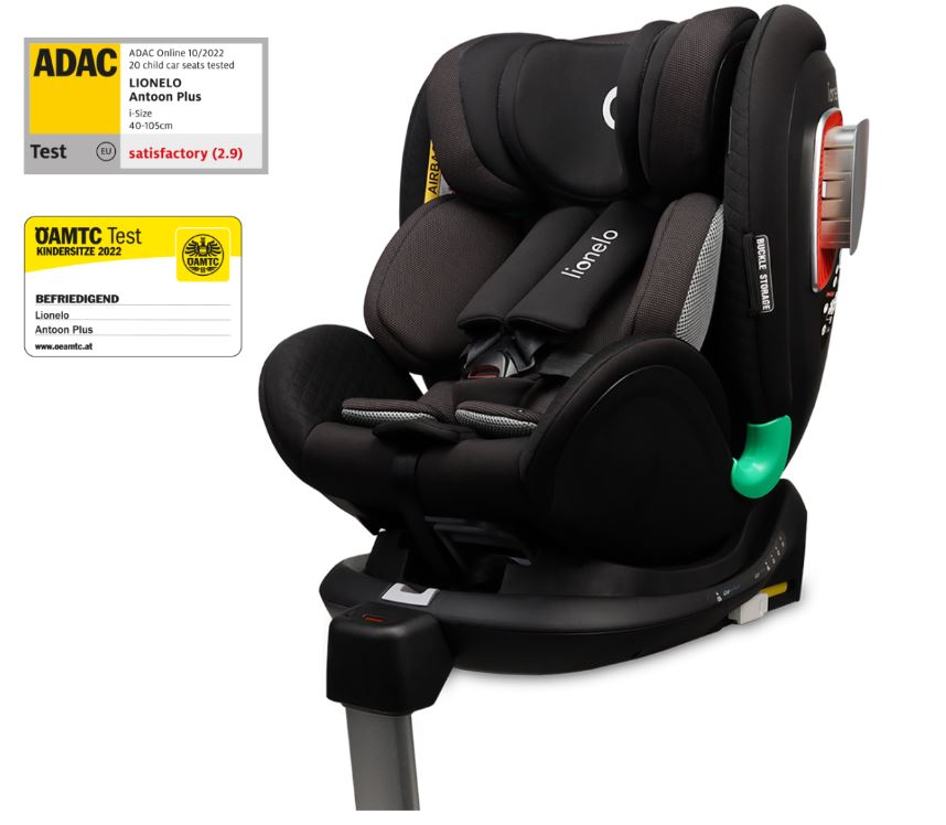 Lionelo Antoon Plus Fotelik Samochodowy ADAC 0-18kg Black Onyx