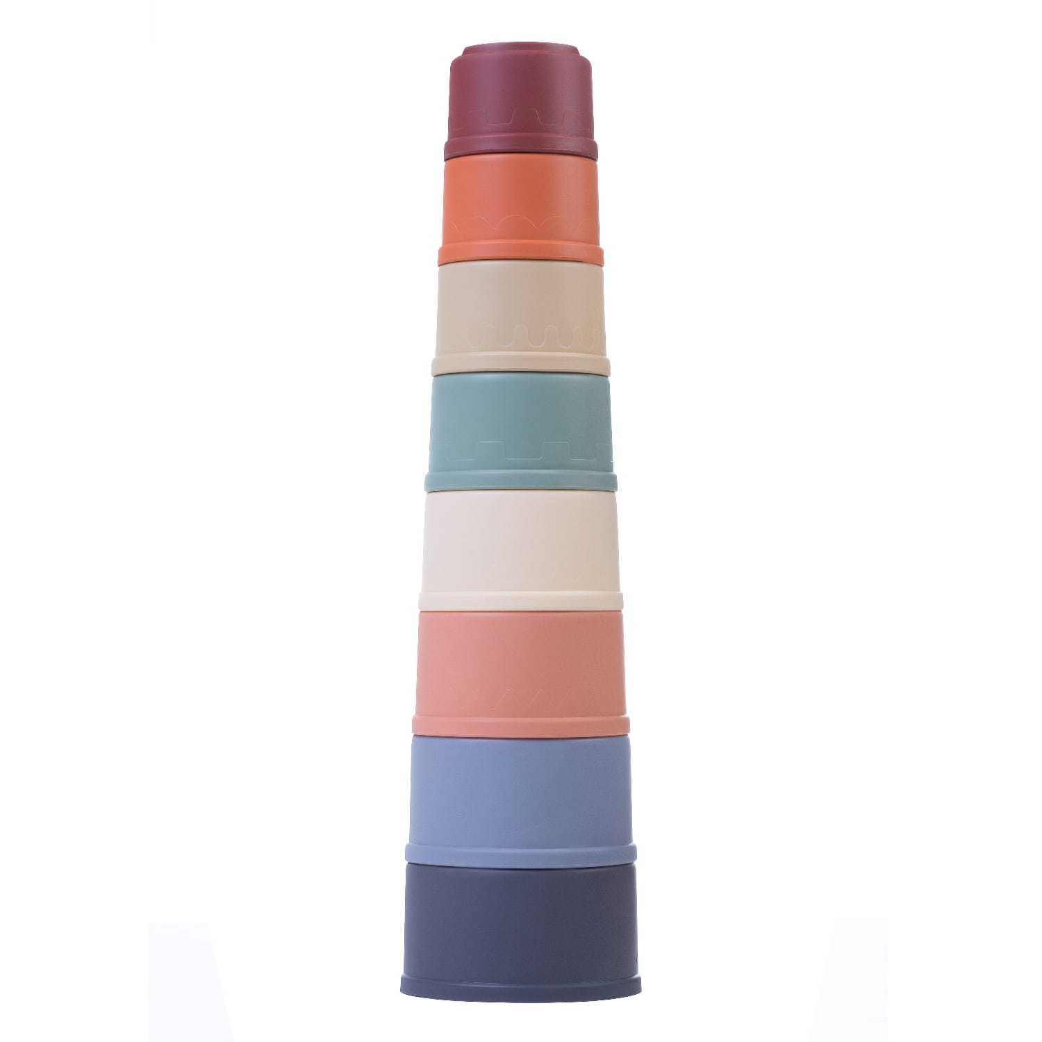 Małe pastelowe kubeczki do zabawy można ustawiać jeden na drugim, przewracając się, dają wiele radości każdemu dziecku. Budowanie wieży to świetna zabawa. Podczas niej dzieci badają, w jaki sposób kształty i rozmiary pasują do siebie i wykorzystują swoją wyobraźnię.