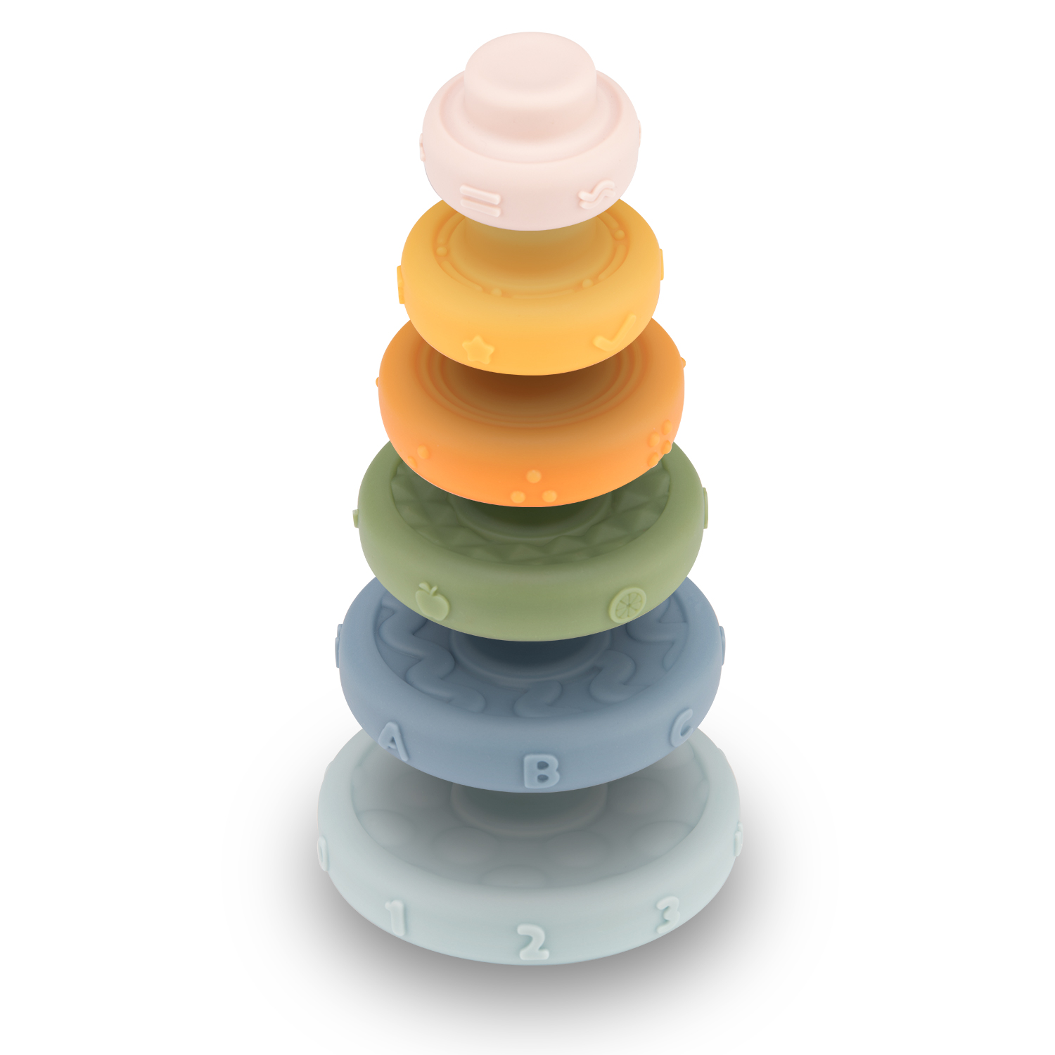 Sensoryczna zabawka układanka Canpol babies piramidka składa się z 6 elementów o różnych wielkościach i kolorach. Układanie kolorowych elementów jeden na drugim od największego do najmniejszego w kształt piramidy ćwiczy zręczność i cierpliwość dziecka. Sensoryczna układanka Canpol babies piramidka pomaga w nauce rozróżniania kolorów i wielkości, wspiera koordynację oko-ręka u dziecka. Każda warstwa piramidy ma wypustki o różnych kształtach – cyfry, literki, kropki itp., dzięki czemu Maluszek może dotykać je paluszkami poznając nowe faktury aktywizując zmysł dotyku lub „smakować” – poszczególne elementy świetnie sprawdzą się jako gryzaki. Sensoryczna układanka Canpol babies piramidka to klasyczna zabawka edukacyjna, dzięki której dziecko poprzez zabawę ćwiczy zdolności manualne, pamięć oraz wyobraźnię, a także logiczne i strategiczne myślenie – jak z porozrzucanych elementów ułożyć wieżę. Układanie sensorycznej piramidki to wspaniała wciągająca zabawa dla Maluszków. Sensoryczna układanka Canpol babies piramidka jest rekomendowana dla dzieci od 6 miesiąca życia.