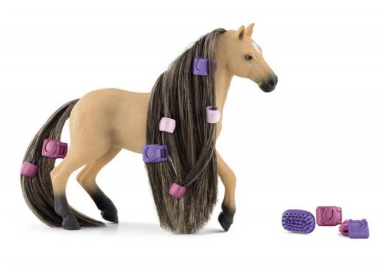 - Zawartość: 1 x klacz andaluzyjska z grzywą i ogonem, które można czesać, 1 x spinka do włosów, 1 x koraliki do włosów, 1 x szczotka na palec