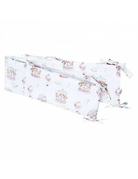 Produkt jest wypełniony włókniną puszystą silikonową, posiada liczne troczki do zamocowania na szczebelkach łóżeczka.