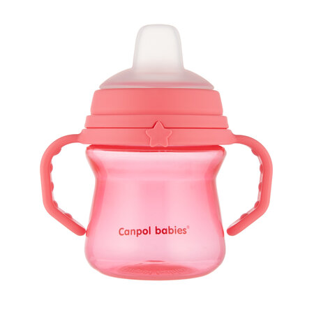 Doskonały do nauki samodzielnego picia po 6 miesiącu życia, dzięki niekapiącemu ustnikowi, który zapobiega rozlaniu. Niekapiący ustnik nie przecieka nawet, gdy dziecko przechyli czy upuści kubek. Kubek jest intuicyjny, przypomina picie z butelki, umożliwiając szybkie i łatwe przejście z butelki do kubka. Wyjątkowo miękki ustnik jest wykonany z delikatnego silikonu, bezpiecznego dla wrażliwych dziąseł dziecka. Kubek jest lekki o ergonomicznej, profilowanej budowie. Wygodne uchwyty ułatwiają dziecku trzymanie go w malutkich rączkach. Niewielka ilość elementów sprawia, że jest łatwy do składania i mycia – kubek nie ma zbędnych zakamarków, dzięki czemu można szybko umyć wszystkie części, a ustnik wyparzyć. Canpol kubek niekapek 150ml z silikonowym ustnikiem jest transparentny, co pozwala kontrolować ilości przyjmowanych płynów przez dziecko. Różowy kubek niekapek Canpol babies 150ml FirstCup posiada szczelną osłonkę, która chroni ustnik przed zabrudzeniem. Różowy kubek niekapek Canpol babies 150ml FirstCup z silikonowym ustnikiem jest idealny dla najmłodszych dzieci już od 6 miesiąca życia. W ofercie jest dostępny wymienny silikonowy ustnik.