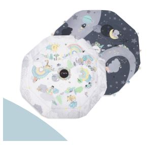 Mata MoMi Day&Night jest dwustronna, posiada jasną oraz ciemną stronę. Jak mówi sama nazwa - dzienną i nocną. Dzięki temu, kupując matę edukacyjną MoMi Day&Night zyskujesz tak naprawdę dwie – rozkładaną matę do zabawy i matę edukacyjną!