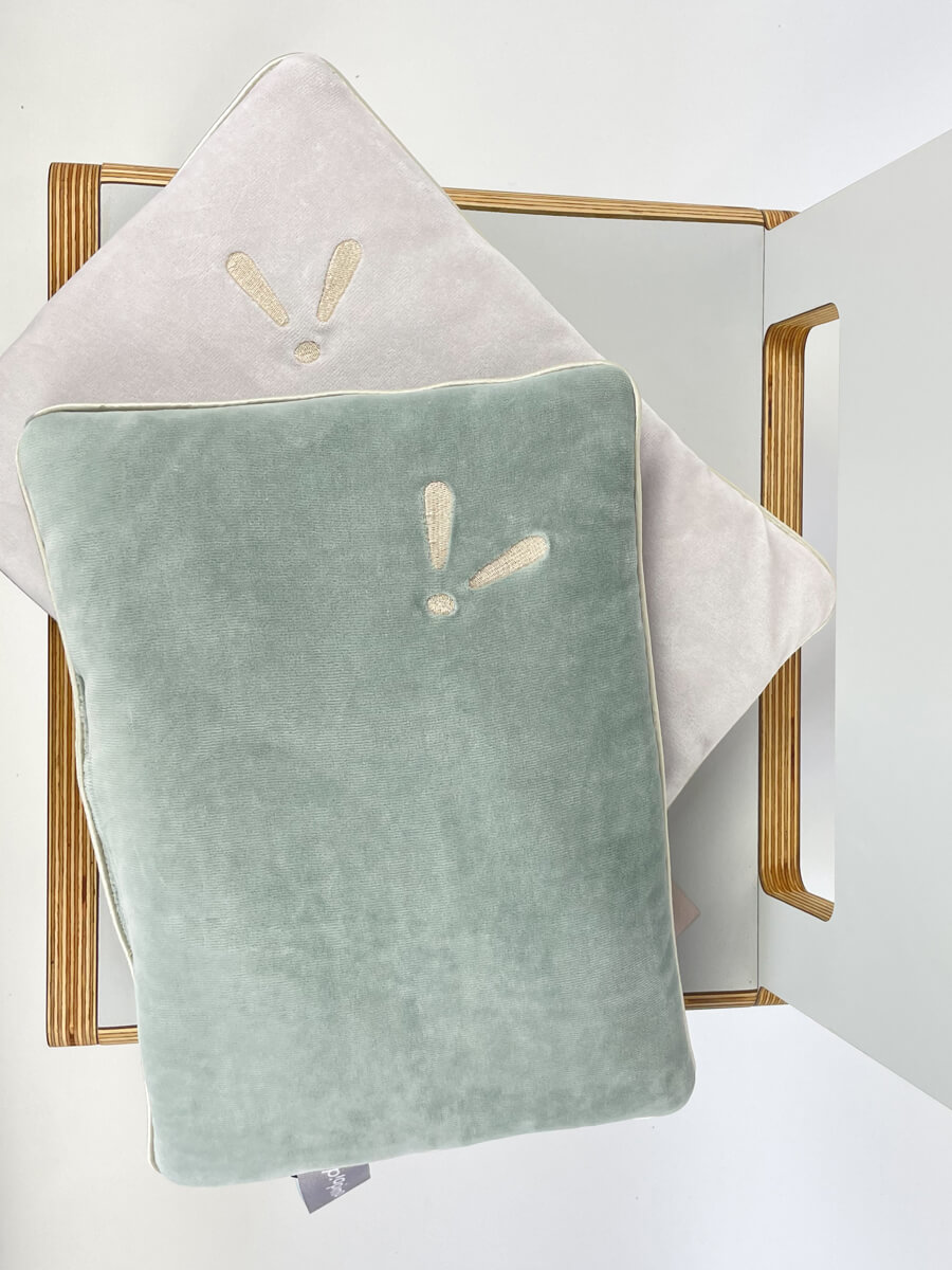 Płaska poduszka welurowa z haftem do wózka. Idealna na pierwsze spacery w gondoli.