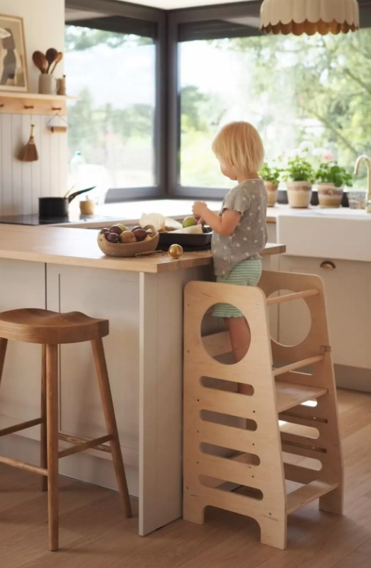 Jeśli szukasz sposobu na włączenie swojej pociechy w domowe aktywności, to Kitchen Helper od Baby Wood będzie świetnym rozwiązaniem! To drewniany podest z zabezpieczeniem, dzięki któremu Wasz szkrab będzie mógł uczyć się „dorosłych” czynności i z pewnością poczuje się z tym doskonale. Produkt od BabyWood łączy w sobie trzy funkcje: podnóżka, podestu i kuchennego pomagacza, znajdzie więc zastosowanie na co dzień, podczas wspólnych zabaw i czynności.