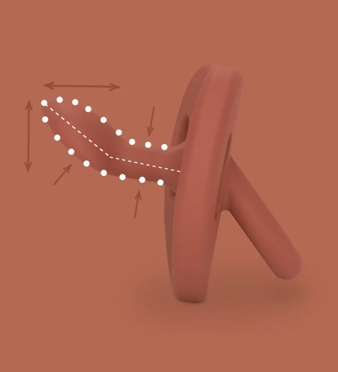 Smoczek z łatwością dopasowuje się do podniebienia, zostawiając językowi wystarczającą ilość miejsca.
