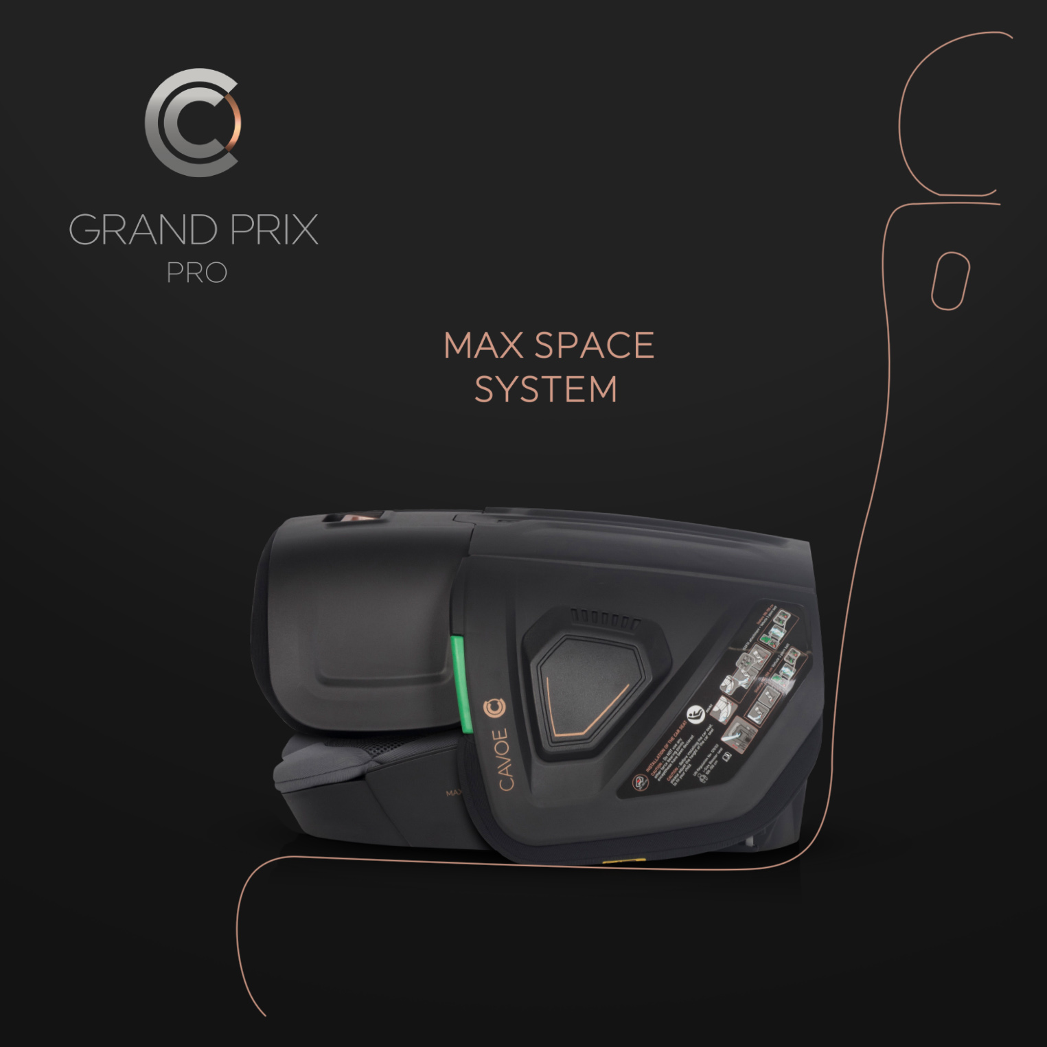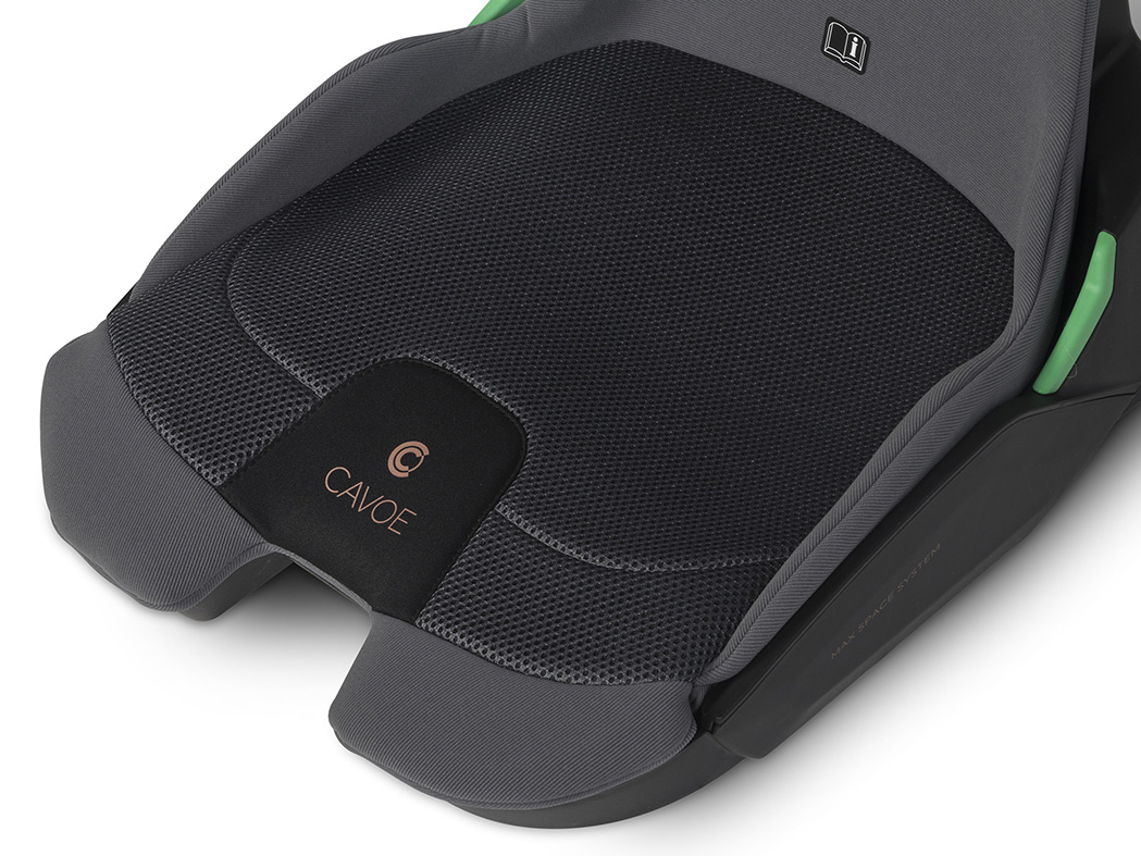 Innowacyjny kształt siedziska został zaprojektowany w taki sposób, żeby całe siedzisko mieściło się na płaskiej powierzchni fotela samochodowego i ściśle do niego przylegało. Wiele nowoczesnych samochodów (zwłaszcza tych ze sportowym zacięciem) posiada mocno wyprofilowane siedziska z tak zwanym trzymaniem bocznym. Właśnie z myślą o takich samochodach powstawał fotelik GRAND PRIX PRO marki CAVOE. Rozwiązanie to świetnie sprawdzi się również w sytuacji, kiedy na tylnej kanapie przewozimy dwójkę dzieci w fotelikach samochodowych, ze względu na oszczędność miejsca.