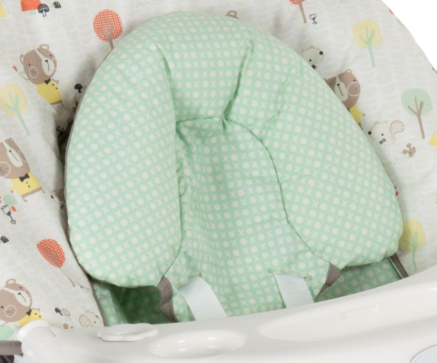 Wiszące pluszowe zabawki stymulują wzrok dziecka. Aż 10 melodii pozwoli uspokoić i zabawić dziecko, a wyściełane siedzisko z 4-stopniową regulacją nachylenia zapewnią mu większy komfort.