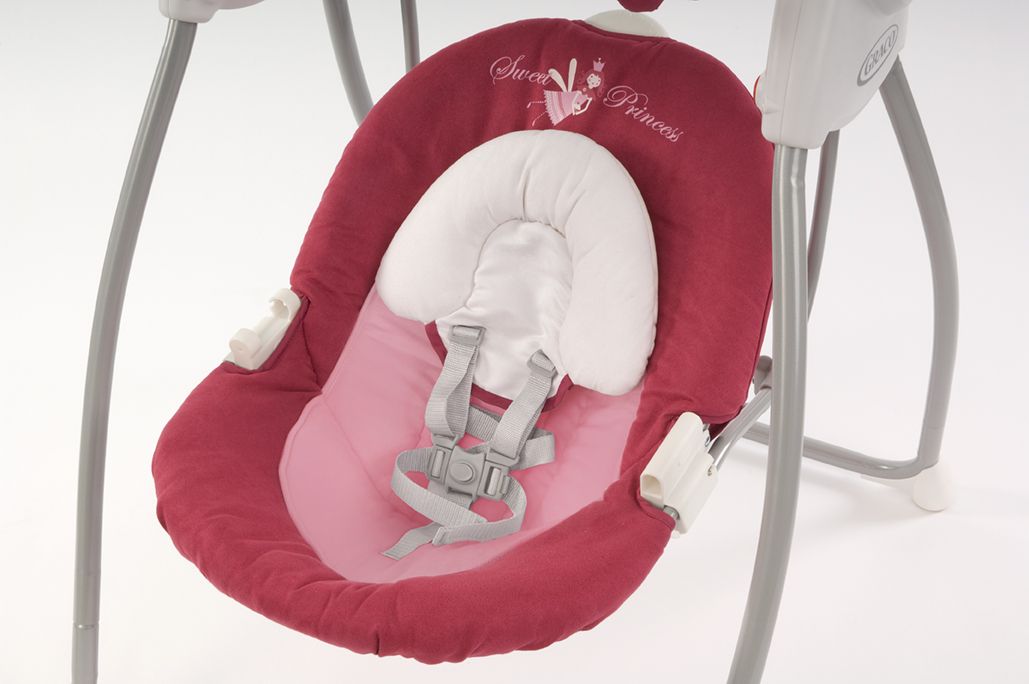 5 punktowe pasy bezpieczeństwa niwelują niebezpieczeństwo wysunięcia się z huśtawki, dając mamie poczucie pewności i spokoju.