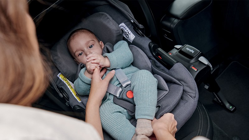Mechanizm obrotowy zapewnia wygodną dla rodzica pozycję podczas wkładania i wyciągania maluszka z fotelika.