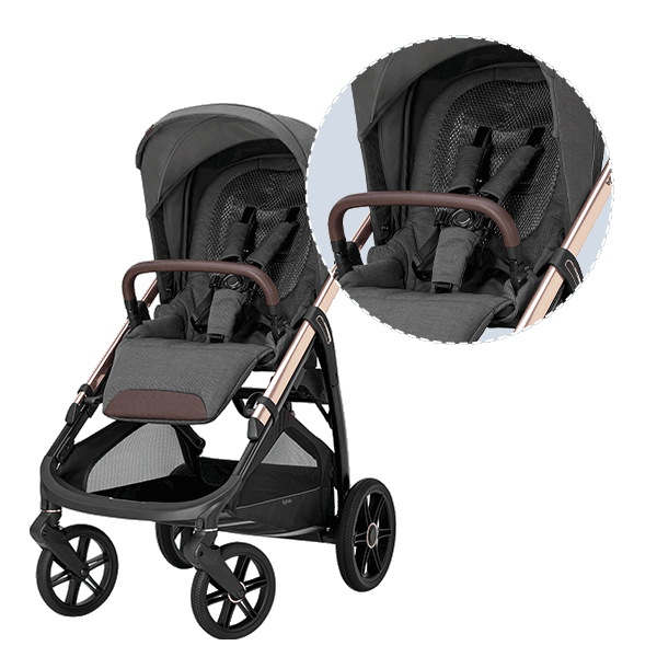 Siedzisko spacerowe montowane jest w dwóch kierunkach. Przodem do rodzica gdy dziecko nadal potrzebuje kontaktu z mamą lub tatą, a także przodem do świata, gdy będzie starsze.