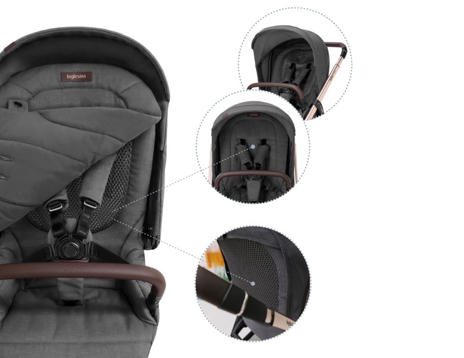 Siedzisko spacerówki zostało zaprojektowane tak, aby zapewnić dziecku maksymalny komfort przez cały rok. Wentylowane oparcie wykonane z podwójnej siatki zapewnia dziecku odpowiednią cyrkulację powietrza latem, natomiast zimą specjalna wkładka Comfort Cover chroni przed zimnem i wiatrem.