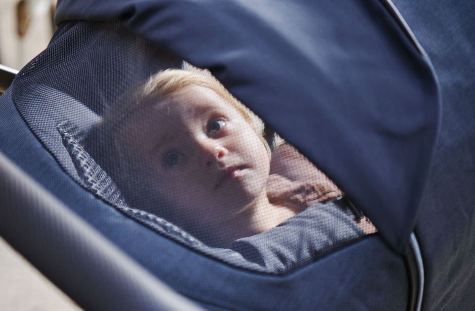 Okienko w budce zapewnia prawidłową cyrkulację powietrza w letnie dni. Duża, rozkładana budka osłania maluszka przed słońcem nawet w pozycji leżącej.