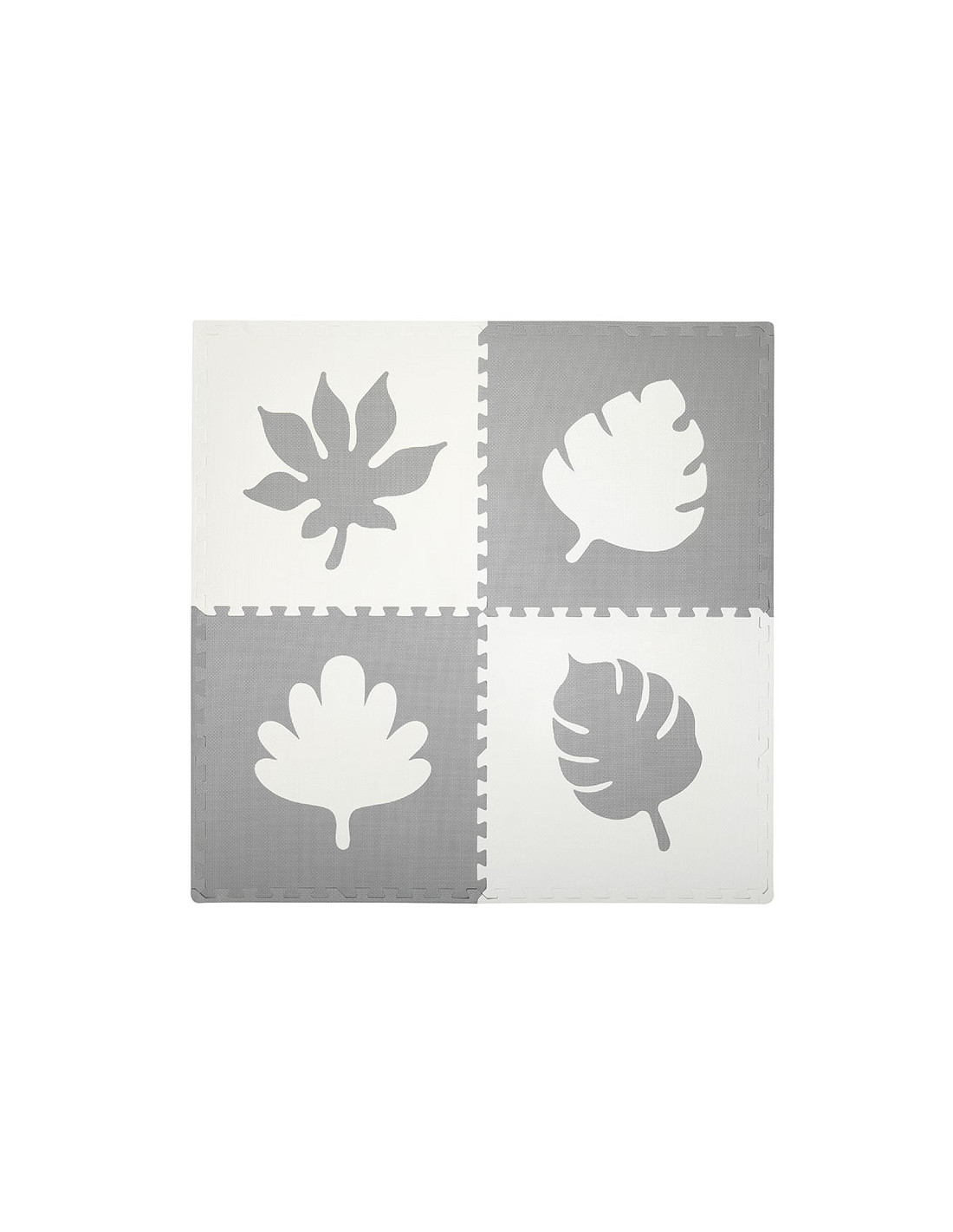 Mata MoMi FELI składa się z 16 elementów – 4 puzzle, 4 duże liście oraz 8 elementów obrzeża. Każdy z puzzli ma wymiar 60x60 cm.