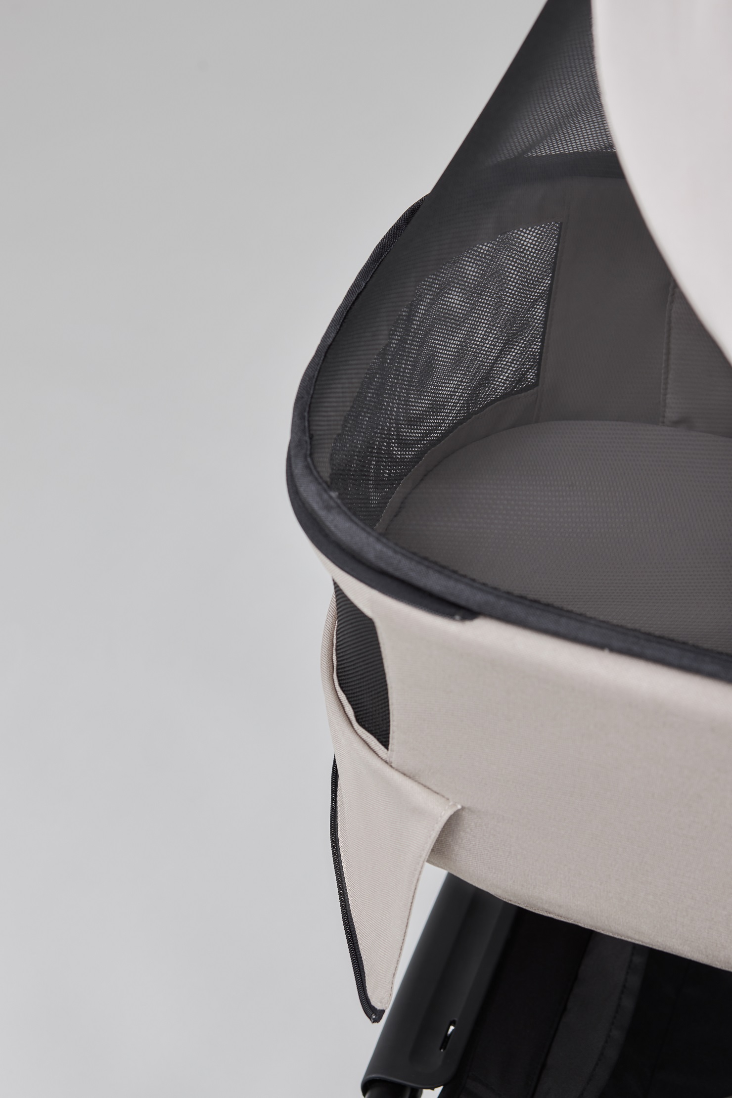 Wentylacja 360o. By Twój maluch czuł się komfortowo i nie było mu gorąco, IQ posiada wyszukany system oddychania, który zapewnia wentylację we wszystkich właściwych miejscach - od kaptura łóżeczka po podnóżek i kaptur siedziska. Oparcie posiada również wentylację siatkową.