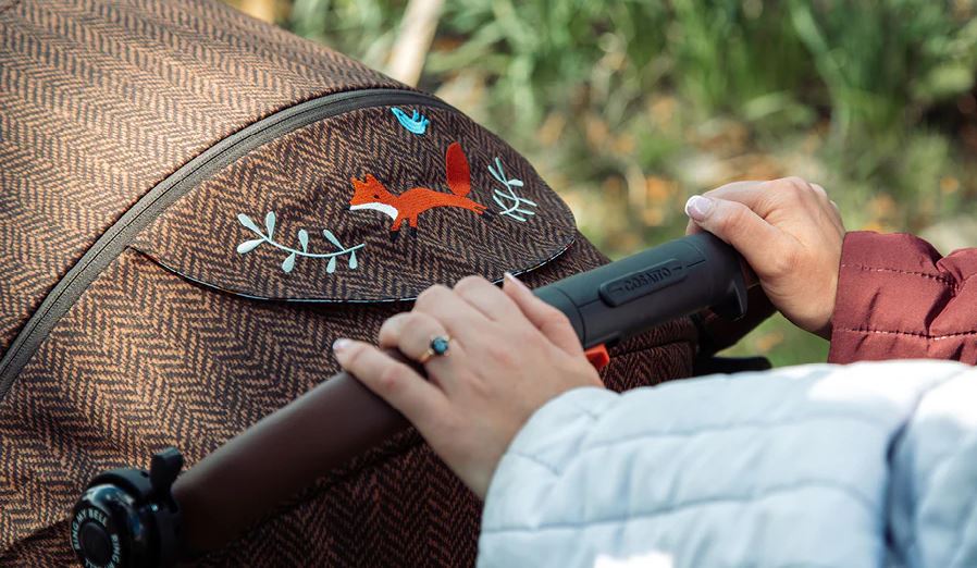Producent wyposażył model w praktyczny element - niewielki dzwoneczek znajdujący się w rączce wózka, który pozwoli Ci zasygnalizować Waszą obecność innym przechodniom. Kierownica została pokryta skórą wegańską, która jest bardzo przyjemna w dotyku.