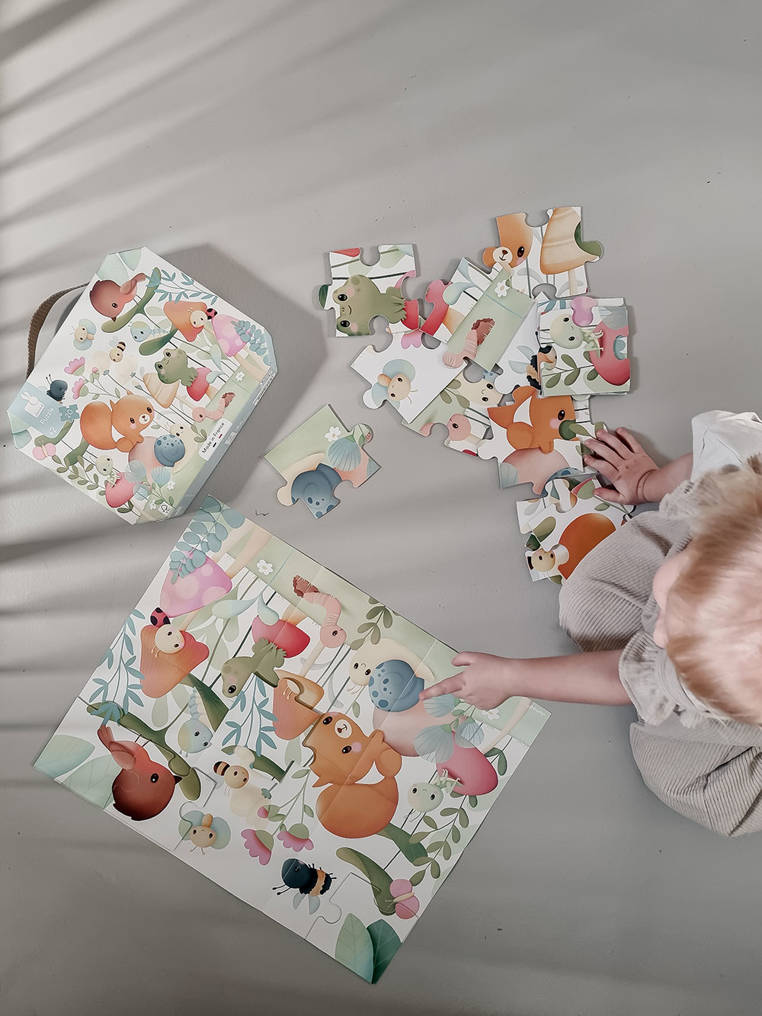 Puzzle zostały wykonane z trwałego kartonu FSC (materiału, pozyskanego z lasów zarządzanych w zrównoważony sposób), a nadruk to nietoksyczny tusz na bazie warzyw. Zaprojektowane i wykonane we Francji. Zapakowane w estetyczną walizeczkę z rączką. Idealnie nadają się na prezent.