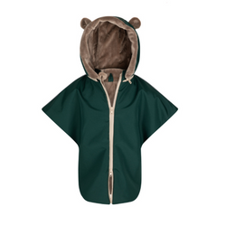 - Wodoodporna zewnętrzna warstwa, która chroni dziecko przed deszczem, śniegiem, wiatrem. Środek poncza wykonany z miękkiego i ciepłego futerka.