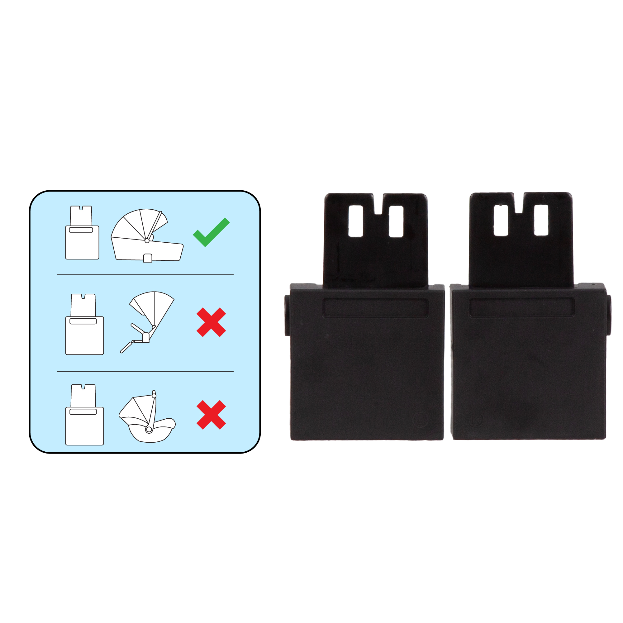 Adaptery służą do zmiany wysokości gondoli i nie są przeznaczone do użytku razem z wózkiem i fotelikiem samochodowym.