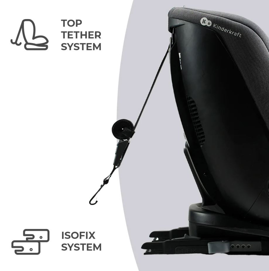 To fotelik obrotowy ze zintegrowaną bazą, który pozwala na łatwe i szybkie obrócenie fotelika bokiem w stronę drzwi. System EASY SPIN 360° umożliwia łatwą zmianę pozycji RWF na FWF bez konieczności demontażu fotelika z samochodu. Montowany jest na ISOFIX i TOP TETHER.