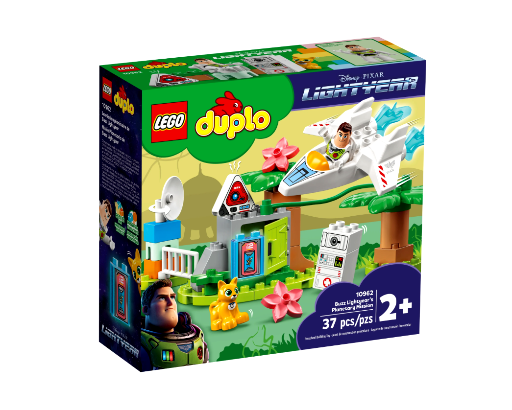 Nauka przez zabawęDzięki zabawkom LEGO DUPLO rodzice mogą uczestniczyć w każdym etapie rozwoju swoich maluchów i zachęcać dzieci do swobodnej zabawy, wyrażania siebie oraz wesołego odkrywania świata.Fantastyczna podróż w kosmos — zestaw LEGO® DUPLO® Disney and Pixar Planetarna misja Buzza Astrala (10962) zapewnia fanom Buzza Astrala niezliczone możliwości rozwijającej zabawy w świecie wyobraźniPlaneta pełna atrakcji — w komplecie figurka LEGO® DUPLO® Disney and Pixar Buzza Astrala, mechaniczny kot Sox, komputer Ivan, trójkątny droid Eric, statek kosmiczny, fascynujące miejsca i ciekawe akcesoriaInteresujące detale — jaskinia ma funkcję otwierania i zamykania, w dżungli jest liana do wspinania się, na stacji jest obracający się radar, a statek kosmiczny zabierze dzieci na kolejną przygodęPrezent dla przedszkolaków — ten praktyczny zestaw doskonale sprawdzi się jako prezent urodzinowy lub upominek bez okazji dla maluchów w wieku od 2 latWięcej do odkrycia — statek kosmiczny Buzza Astrala ma ok. 5 cm wysokości, 14 cm długości i 13 cm szerokości, więc mieści się w małych rączkach, jednocześnie oferując naprawdę wielkie przygodyNauka przez zabawę — wszystkie zestawy LEGO® DUPLO® oferują wciągające historie, atrakcyjne kolory, różnorodne postacie i fascynujące detale, dzięki którym maluchy czeka WSPANIAŁY początek życiowej podróżyJednolita jakość — elementy LEGO® DUPLO® spełniają surowe branżowe standardy. Dzięki temu maluchy mogą z łatwością chwycić, złączyć i rozłączyć klocki — i tak jest niezmiennie od 1969 rokuGwarancja bezpieczeństwa — klocki i inne elementy LEGO® DUPLO® są zrzucane, podgrzewane, zgniatane, skręcane i dokładnie badane. Dzięki temu możesz mieć pewność, że spełniają wymagające światowe standardy bezpieczeństwa