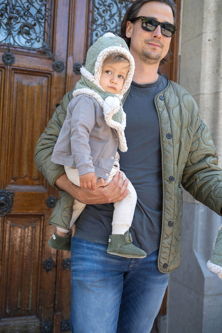 Warstwa wewnętrzna wykonana została z polaru Sherpa, tj. szczotkowanego ultramiękkiego materiału, który w dotyku przypomina futerko. Szaliczek ma prosty krój i szlufkę do przełożenia jego drugiego końca, dzięki której doskonale przylega on do szyi dziecka (a przy tym nie uciska i nie drażni maluszka) i skutecznie chroni przed chłodem.
