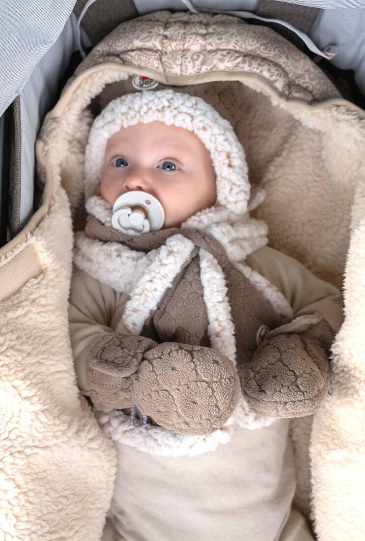Polarowe rękawiczki niemowlęce holenderskiej marki Lodger. Komfortowe i ciepłe. Idealne na spacery na świeżym powietrzu, niezależnie od pogody. Warstwa zewnętrzna jest odporna na wilgoć, zapewnia ochronę przed deszczem, wiatrem i zimnem. Warstwa wewnętrzna wykonana została z gładkiego, przyjemnego dla skóry polaru.
