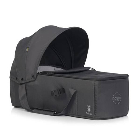 Gondolę montuje się na rozłożonym na płasko siedzisku wózka za pomocą systemu zapięć. Gondola do wózka DOBLO posiada aż 2 niezależne systemy mocowań: karabińczyki oraz taśmy zaciskowe. Dzięki nim, gondola jest pewnie osadzona w wózku i gwarantuje bezpieczeństwo dziecku.