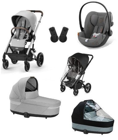 Cybex Balios S Lux Wózek Głęboko-Spacerowy + Cloud G I-Size Fotelik Samochodowy 0-13kg + Osłony Przeciwdeszczowe + Adaptery Lava Grey