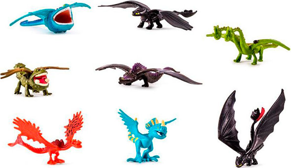 Zestawy zawierają figurki smoków w torebeczkach do zbierania i kolekcjonowania.