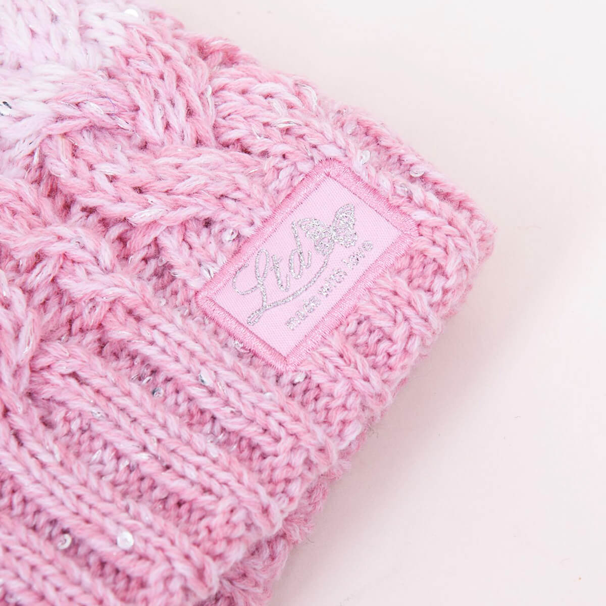 Wykonana z miękkiej dzianiny w odcieniach różu z ecru. Od spodu ocieplona miękkim kożuszkiem. Ozdobiona grubym wzorem warkoczowym, drobnymi, srebrnymi cekinami oraz uroczym, futrzanym pomponem. Czapka idealna na chłodną jesień oraz na zimę. Doskonale pasuje do zwykłej kurteczki, jak i do eleganckiego płaszcza. Czapka bardzo miękka i podatna na rozciąganie, dzięki czemu nie będzie uwierać. Produkt polski.