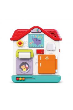 W domku kryje się wiele precyzyjnych czynności do wykonania, które mają za zadanie wspierać rozwój motoryki małej u dziecka. Może ono ćwiczyć paluszki, poprzez chwytanie i ciągnięcie kwiatka, podnoszenie zasłonki, wyciąganie ręcznika czy przechylanie i odkręcanie butelki. Podczas zręcznościowej zabawy w odkrywanie maluch może ćwiczyć zmysły! Nie tylko zmysł dotyku i sprawność paluszków, ale także słuch, poprzez słuchanie realistycznych odgłosów i wesołej melodii oraz wzrok, obserwując ruchome elementy.