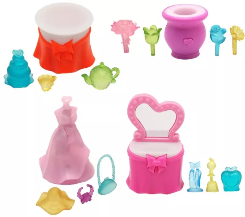 W skład zestawu wchodzi różowa toaletka z lustrem oraz trzy kolorowe dodatki: baletki, radio oraz statuetka za zajęcie pierwszego miejsca.